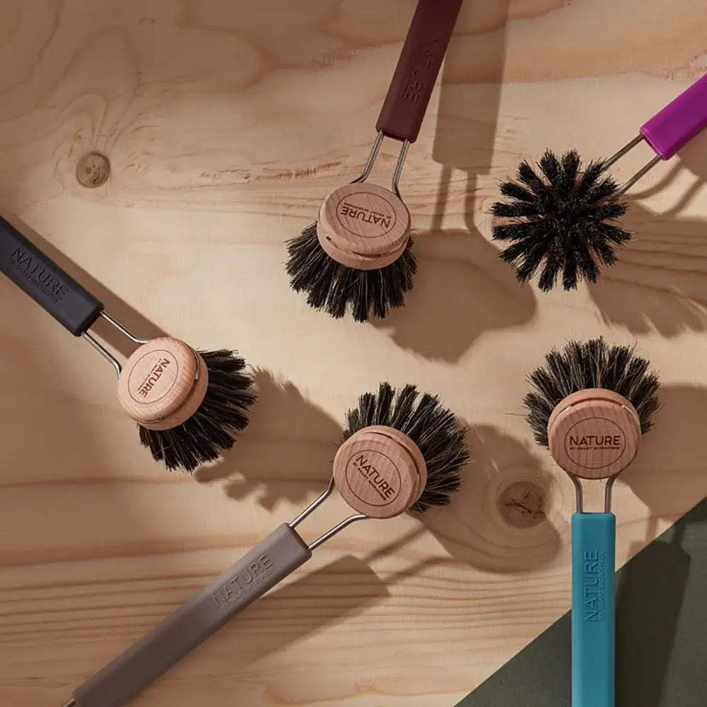 Afwasborstel met FSC‑beukenhouten kop, siliconen handvat en zachte paardenhaarmix. Duurzaam, stijlvol en vervangbaar. Lees meer