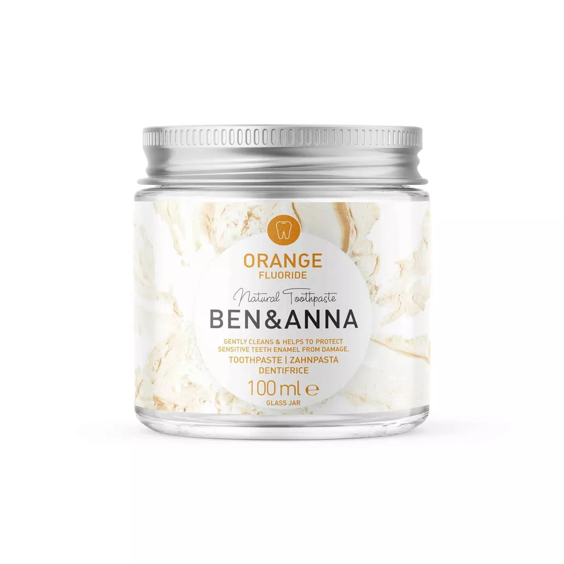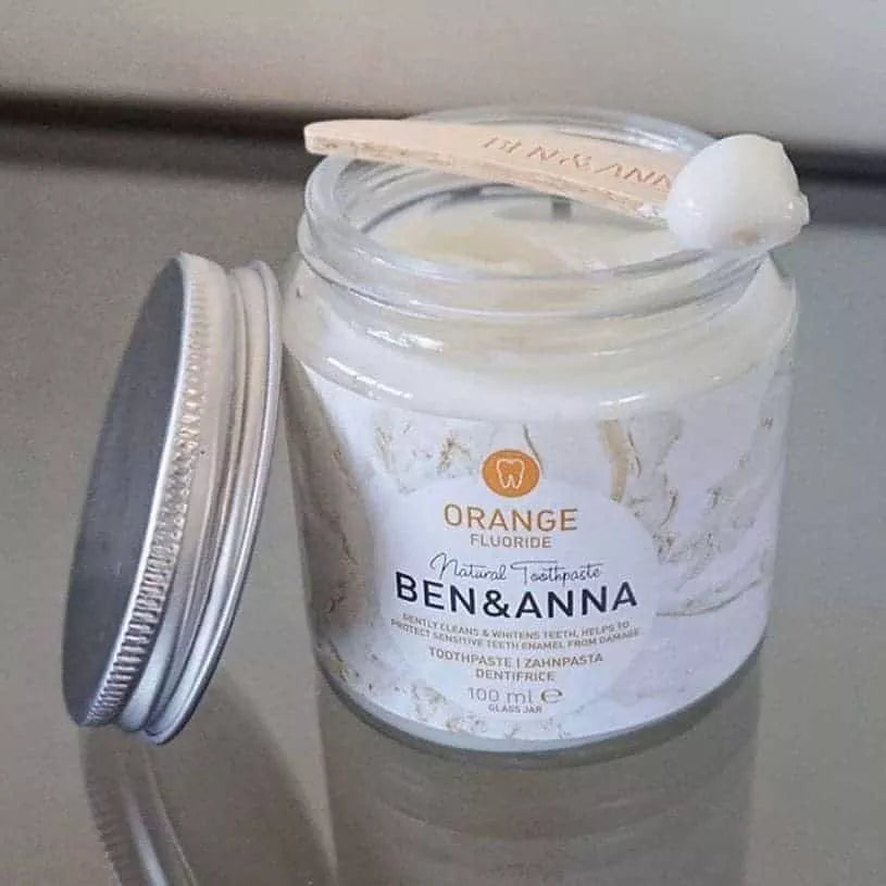 Ben & Anna Tandpasta Oranje met Fluoride – Glazen Pot – 100 ml