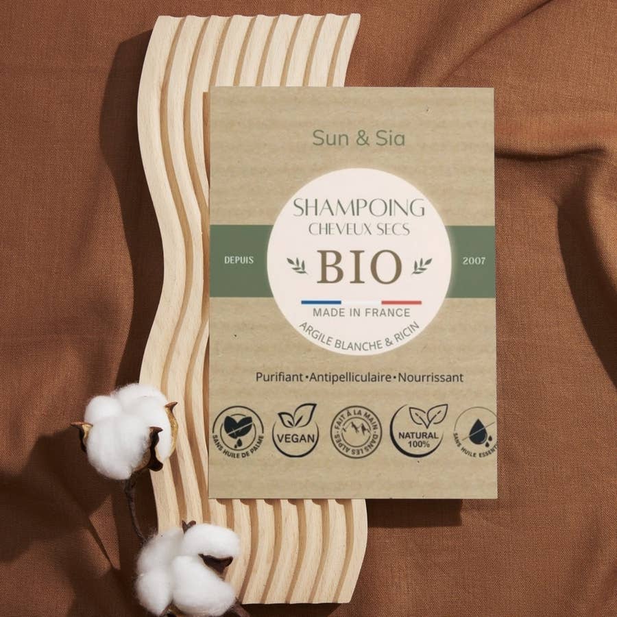 Zachte vaste shampoo voor droog haar, met witte klei en ricinusolie. Reinigt, voedt en hydrateert zonder siliconen of sulfaten.