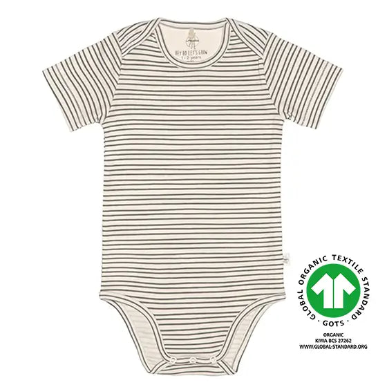 Lässig baby romper korte mouw GOTS gestreept grijs – zacht & praktisch